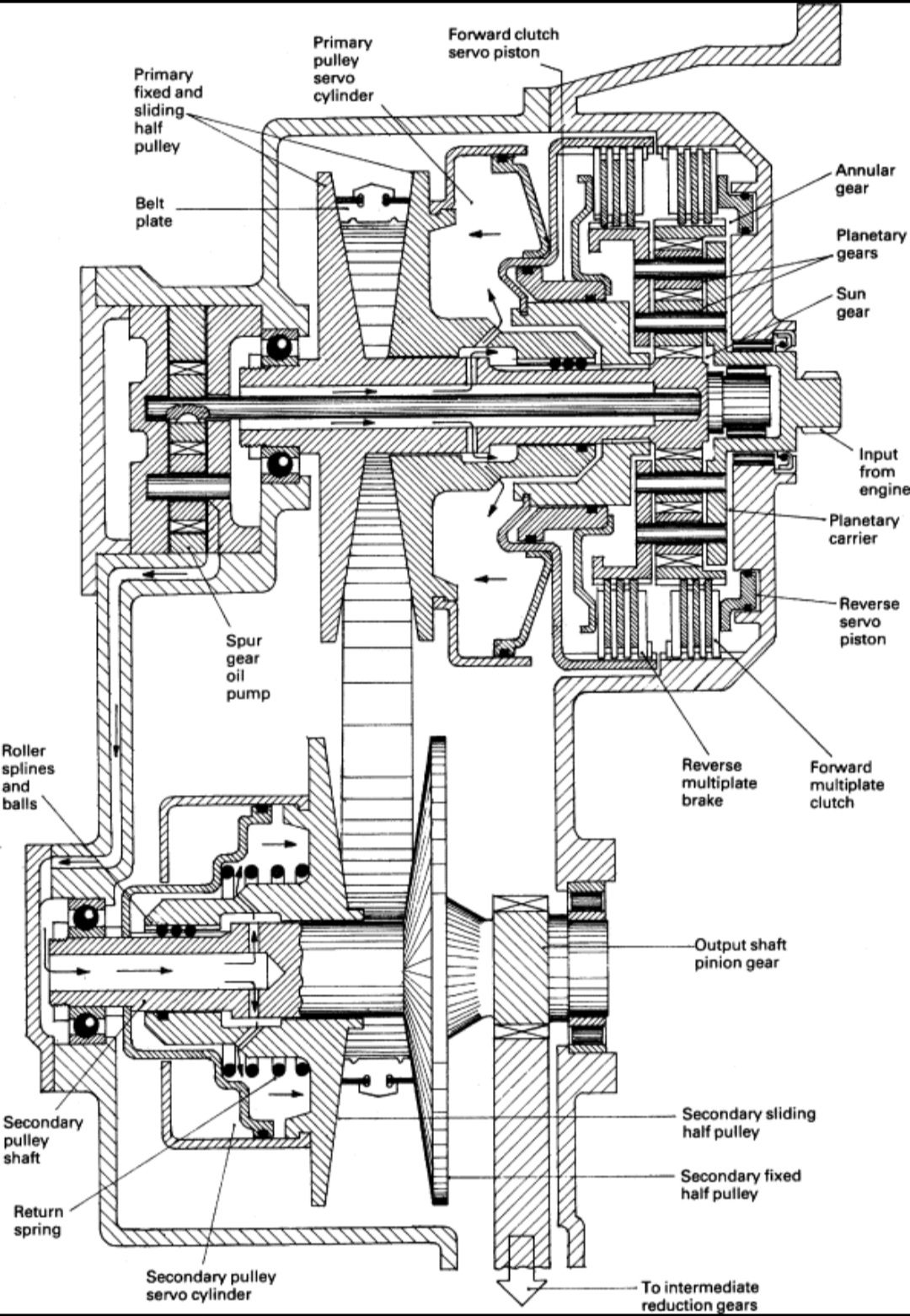 گیربکس CVT (Continuously Variable Transmission) نوعی گیربکس اتوماتیک است که به جای استفاده از دندههای ثابت، از دو پولی متغیر و یک تسمه یا زنجیر فولادی برای انتقال نیرو استفاده میکند. در این سیستم، با تغییر قطر پولیها، نسبت انتقال نیرو بدون ضربه و جهش بین دندهها تغییر میکند.